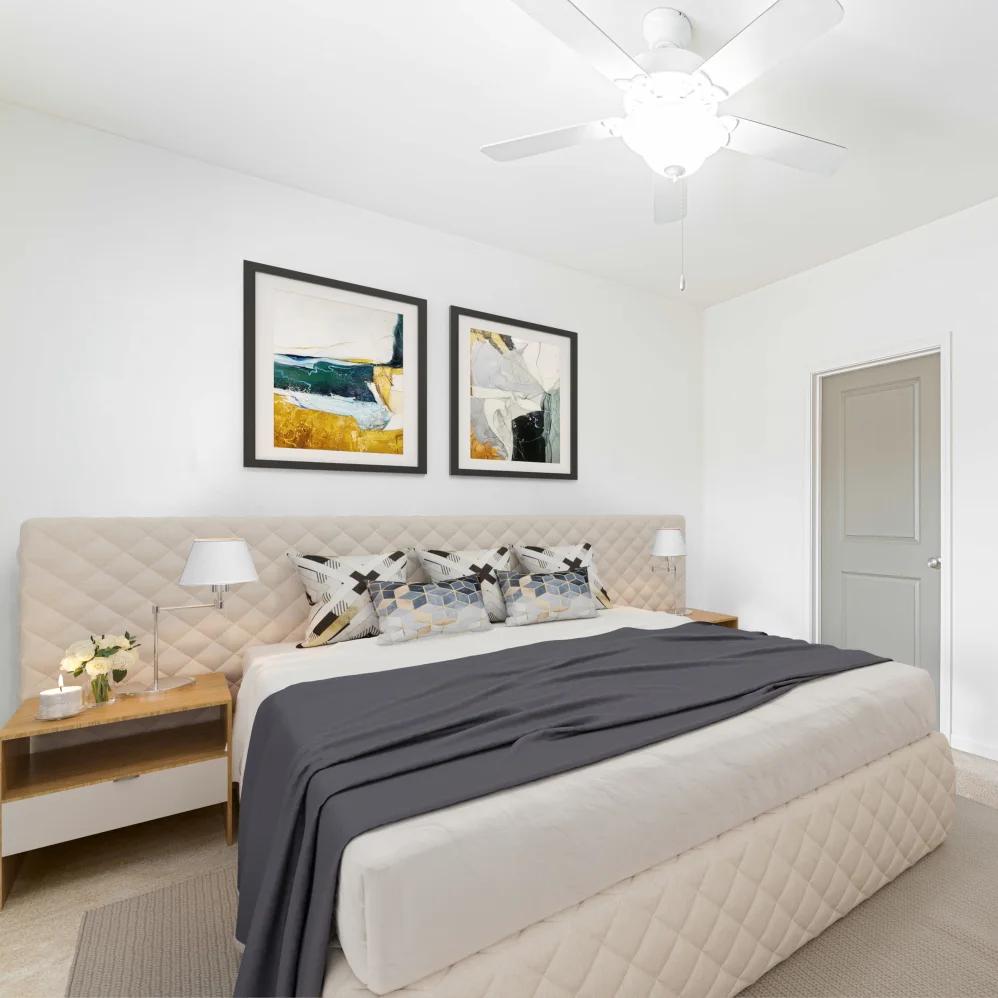 - Beds, nightstands, lamps