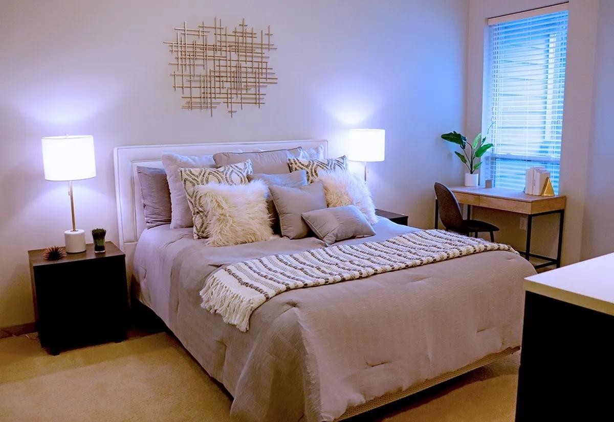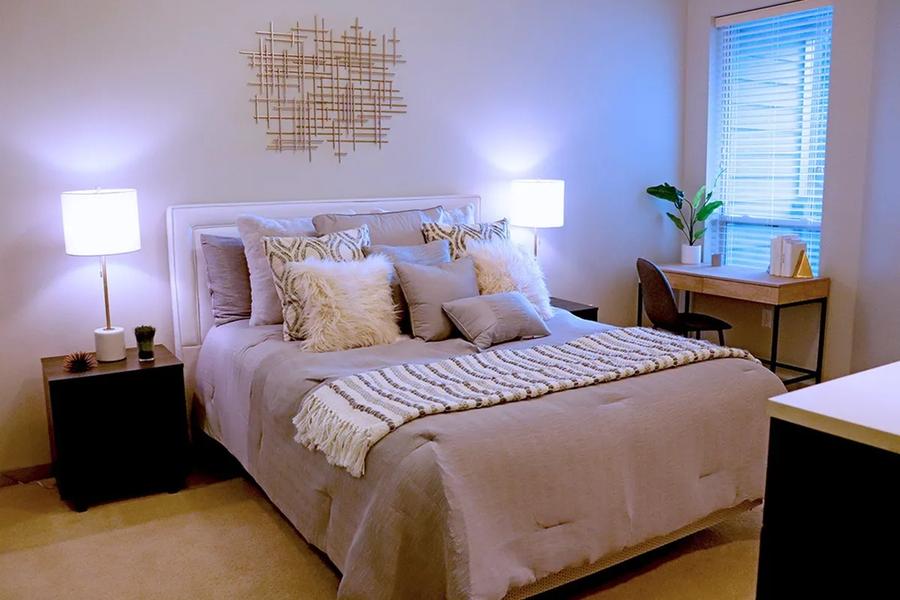 - Beds, nightstands, lamps