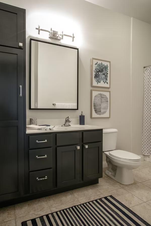 - Ceramic tile in bathrooms