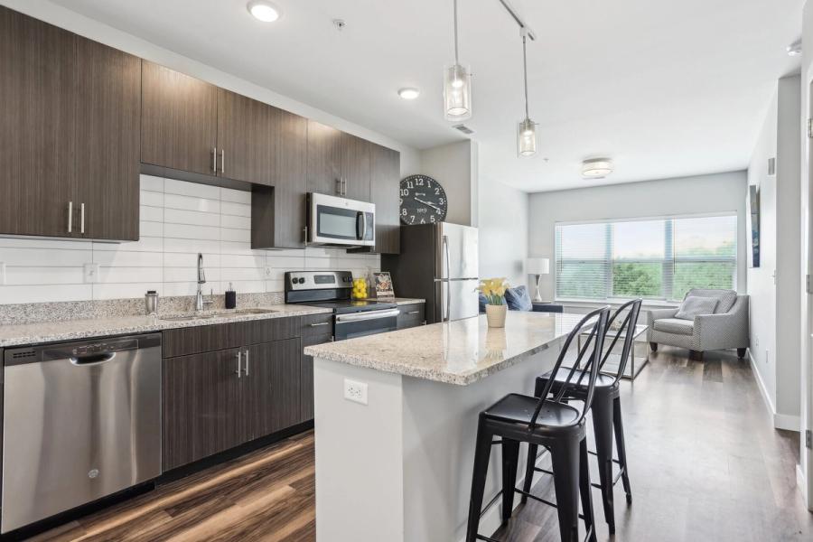 Whispering Heights apartments deliver upscale, modern living in Edwardsville with beautiful interiors and high end finishes like hardwood floors, granite countertops, stainless steel appliances, high ceilings, and in home washer and dryer. With community perks like garage parking and bike storage, a state of the art fitness complex, a clubhouse with games and smart TVs, and rooftop decks for relaxing, you are set in the heart of Edwardsville close to local dining, fitness, and everyday conveniences.